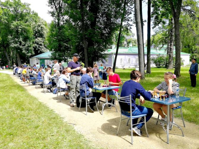 Приехал в усадьбу из Москвы и Чехов. Не Антон Павлович, не артист, а вполне реальный Валерий Александрович. Автор учебной литературы, сильный гроссмейстер, и замечательный человек. Нашлись смельчаки, которые ввязались в бой с профессионалом на условиях двадцать против одного. Победить не удалось никому. Правда, Попова Ирина, Дмитренко Вероника, Шиляев Вадим, Есаулов Александр (все г.Орёл), Кузнецова Марина (г.Железногорск) и Стражников Матвей (г.Елец), проигрывать также отказались. Всех наградили подарками. Зафиксированные результаты оставили открытым вопрос: «Кто, мужчины или женщины, сильнее играют в шахматы в сеансах?».