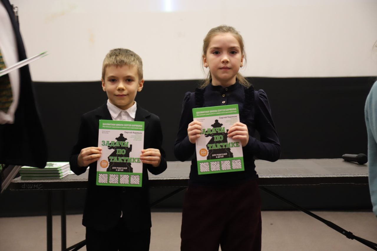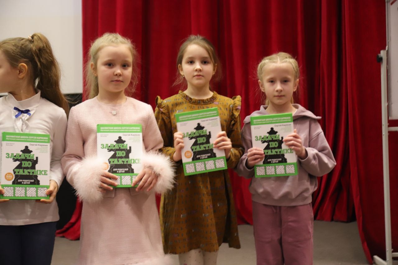 Победители и призеры получили кубки, грамоты и медали, а все ребята – шахматные книги, блокноты и карточки с автографом Сергея Карякина.